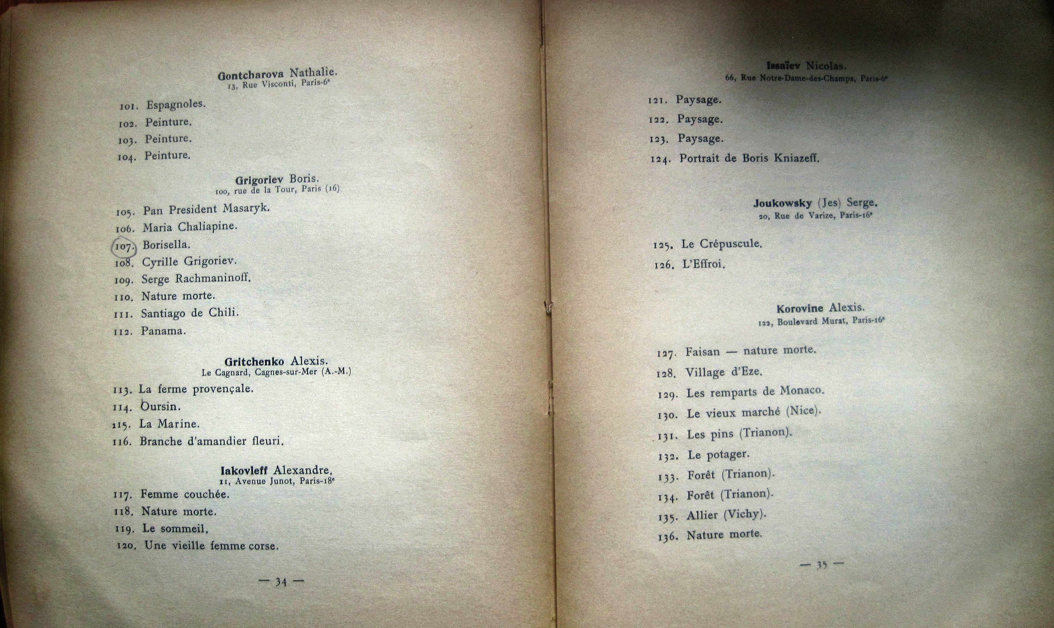 Lithographic covers by N. Goncharova. Participants: ANISFELD, ANNENKOV, ARCHIPENKO, ARKHIPOV, BURLIUK, CHAGALL, FECHIN, GONCHAROVA, GRIGORIEV, LARIONOV, LISSITSKY, MALIAVIN, MALEVICH, PETROV-VODKIN, REPIN, ROERICH, SUDEIKIN, YAKOVLEV, ZADKIN et al.