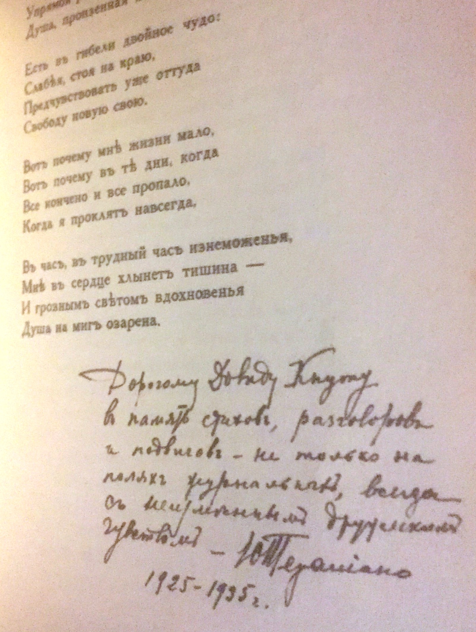 см. Дарственная подпись от автора Николаю Николаевичу Туроверову.Портреты, изд. «Слово», Берлин, 1931 г. В издательской типографской обложке