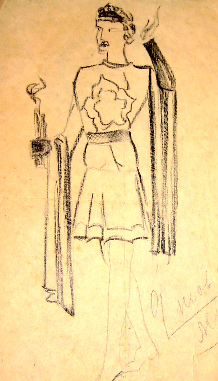 Portrait of a dancer Clotilde Sakharova. Pencil, ink on paper. Signed. Dated 12.07.29, Lausanne. 13 x 10" Bibliography: “A Time to Gather… Russian Art From Foreign Private collections”, State Russian Museum, Saint-Petersburg, Palace Editions,2008, illustrated on p.24.Exhibited: “A World of Stage”, April- October2007, Tokyo Metropolitan Art Museum, Japan (illustrated in the catalog). In original art nouveau Austrian walnut hand-carved frame with a maker label “ C. Buhlmayer, Wien” on the back