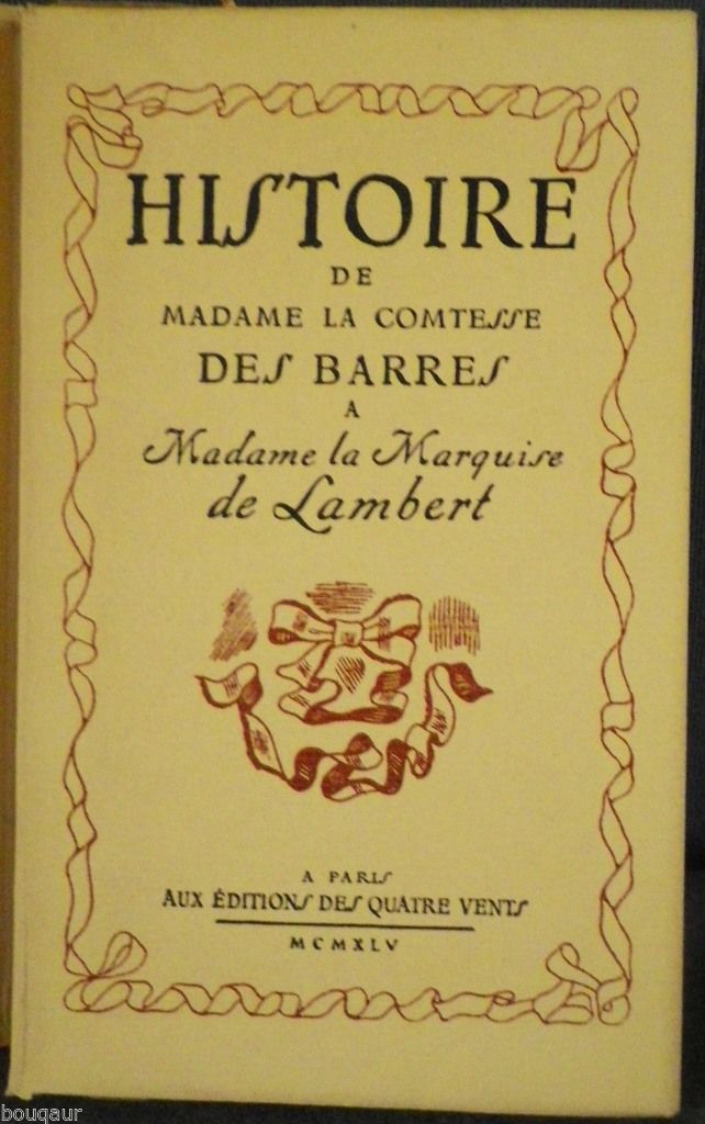 a) De Choisy. Histoire de Madame de Barres. Paris, Editions de Quatre Vents,1945.1/650.Copy H.C.[not for sale],1/30,with additional set of 9 erotic (lesbian) lithographs. In original box.