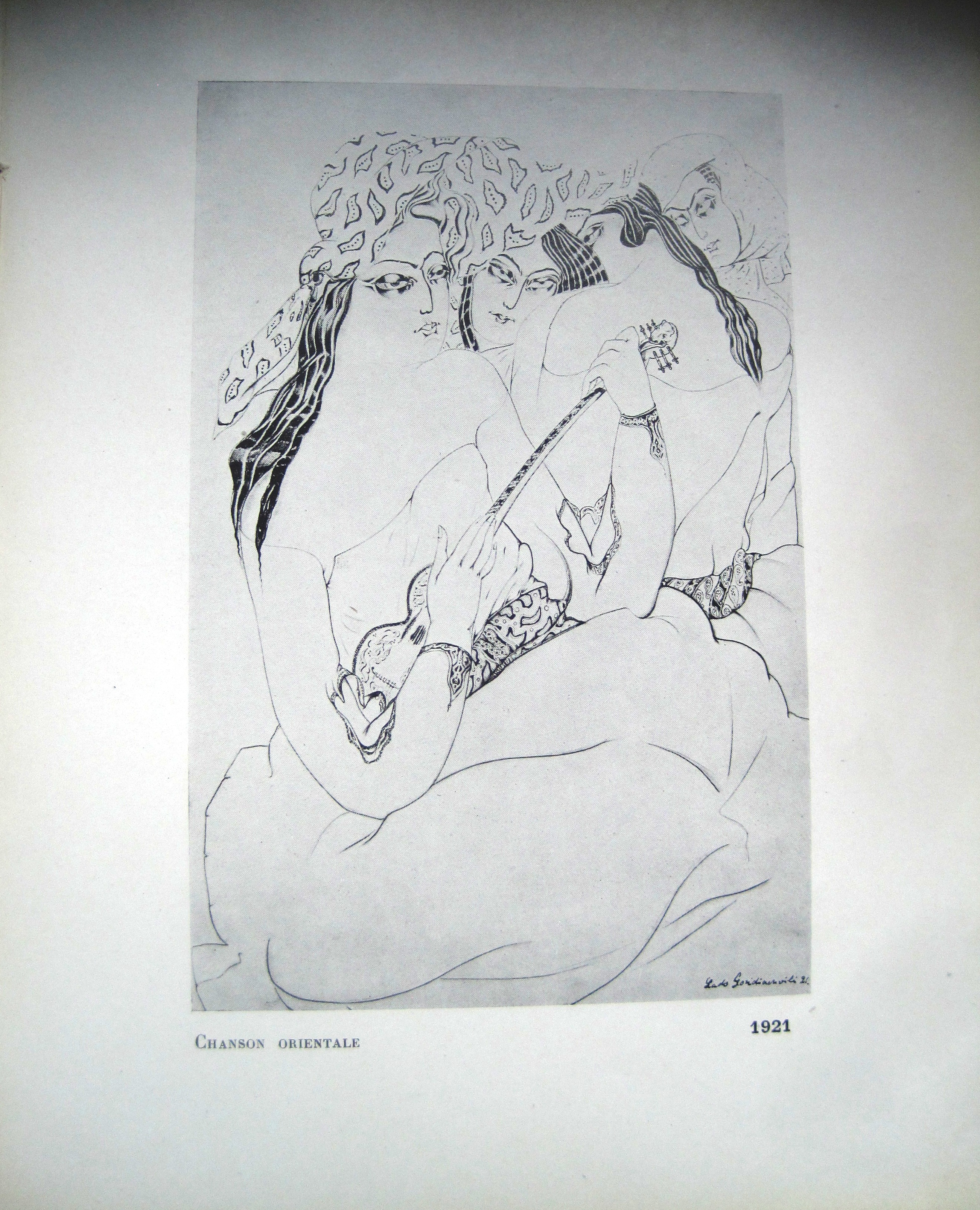 "Ballet scene at Georgian Opera" {"Ballet D'un Opera Georgien"} Pencil on paper, signed, situated Paris and dated 1921lower right 19x12"(47.5 x 30.8 cm) Exhibited: Galerie de la Licorne 26.05.-09.06.1922, Paris, #57 of the catalog (inscribed with #57 and the title of the drawing on the reverse) In original art nouveau Austrian frame. Provenance: Collection de M-me Mdivani; Drouot, Dominique Giafferi, sale 29.03.2013 lot 13.