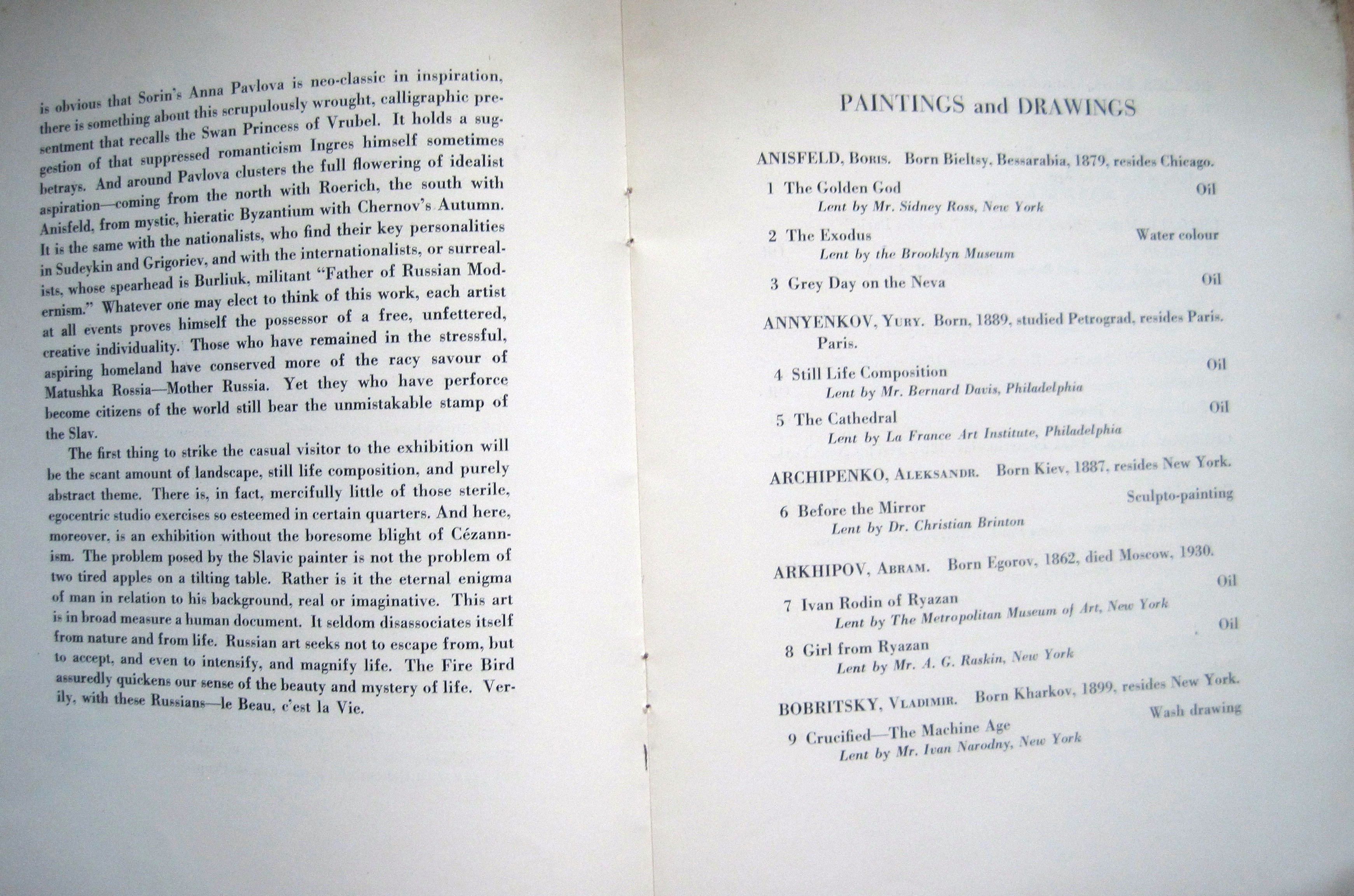 A very rare Art Catalog "The Exhibition of Russian Painting and Sculpture - Realism to Surrealism" , The Wilmington Society of the Fine Art 1932