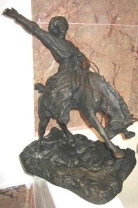 RODEO RIDER Signed and dated 'Paul Troubetzkoy 1929' and with 'Cire A. Valsuani Perdue' foundry stamp, bronze with dark brown patina, on wooden base Height, 19 1/8 in. (48.6cm) Length, 17 5/8 in.; (with base), 20 7/8 in. (53cm) Original gesso model of it with one hand missing and conditionally dated 1924 is in Verbania Museum ( illustrated on p. 215 #176 of the catalog; Verbania Pallanza 29.4-29.7. 1990); provenance: From the Collection of the Estates of Edward C. Fogg, III and Lisbeth A. Fogg; Freeman's auction, Philadelphia 26 jan 2016, lot 116