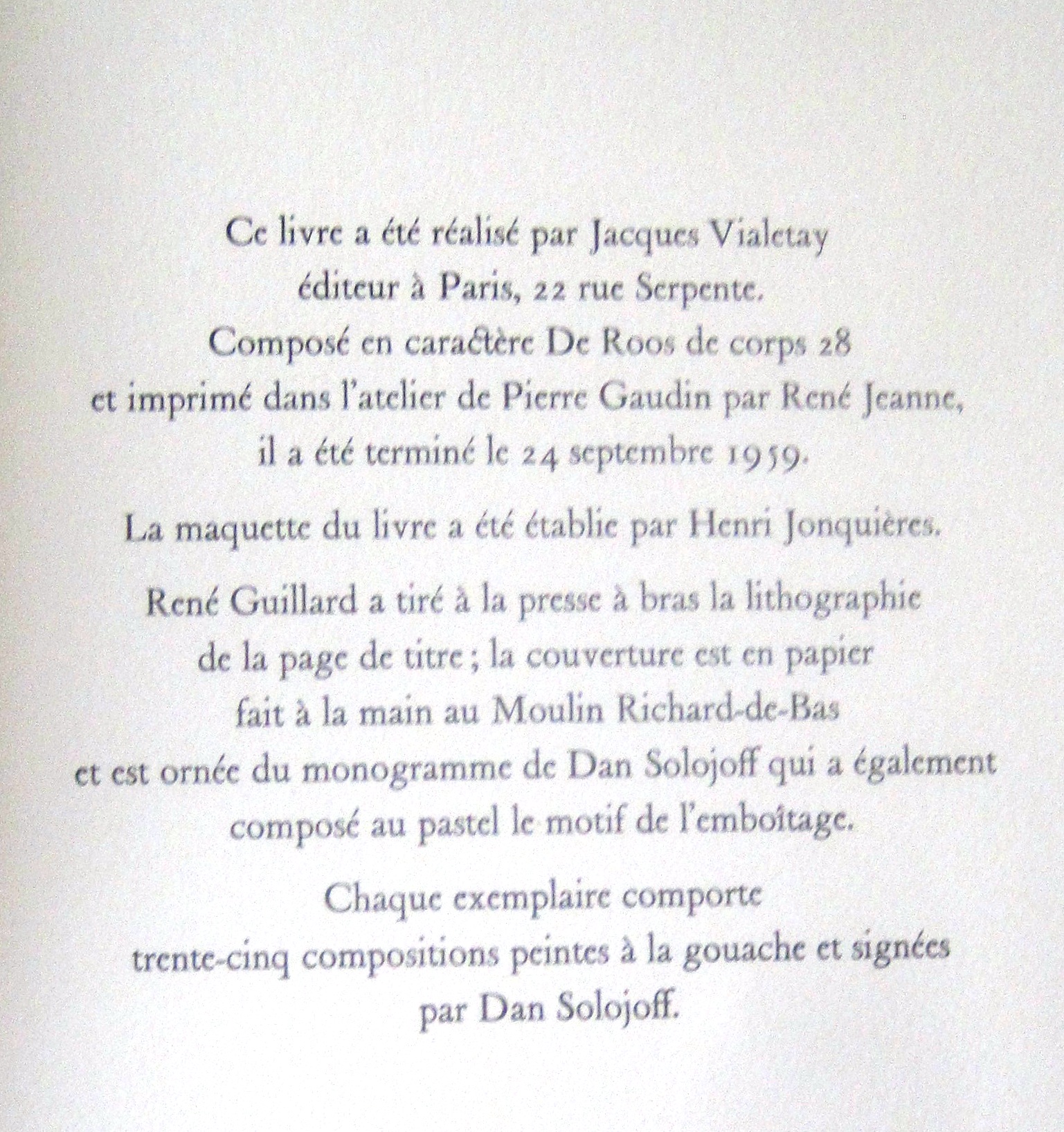 in-4, broché. Édition originale. Premier tirage des 26 dessins originales hors-texte. Includes 15 full-page and 20 in-text original gouaches. Edition VI of only ten issued for collaborators and accompanied by an additional original gouache, total edition of 62, all with original illustrations.