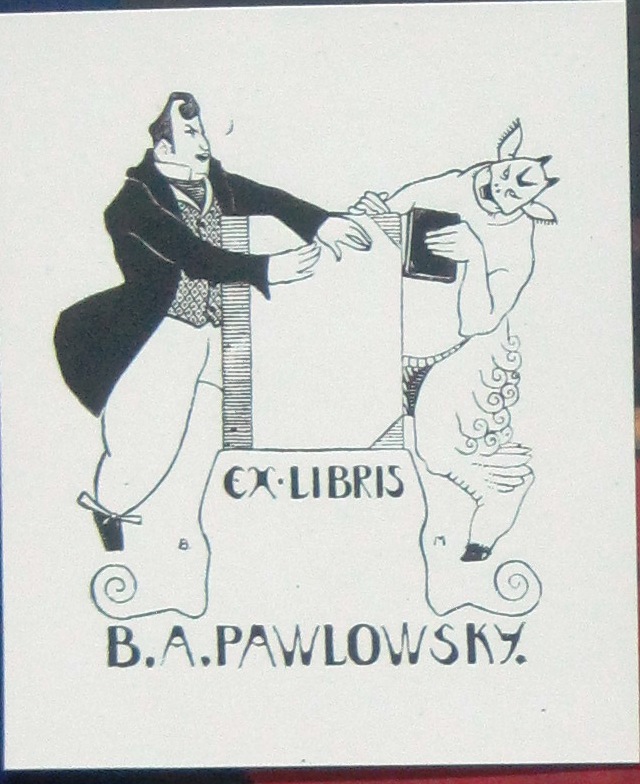 Cover for the book "Gravura", original drawing, pen, red and black ink, watercolor on cardboard, 14x23 cm, signed with Cyrillic initials BM as part of draft and signed one more time with full signature in German low right $3000